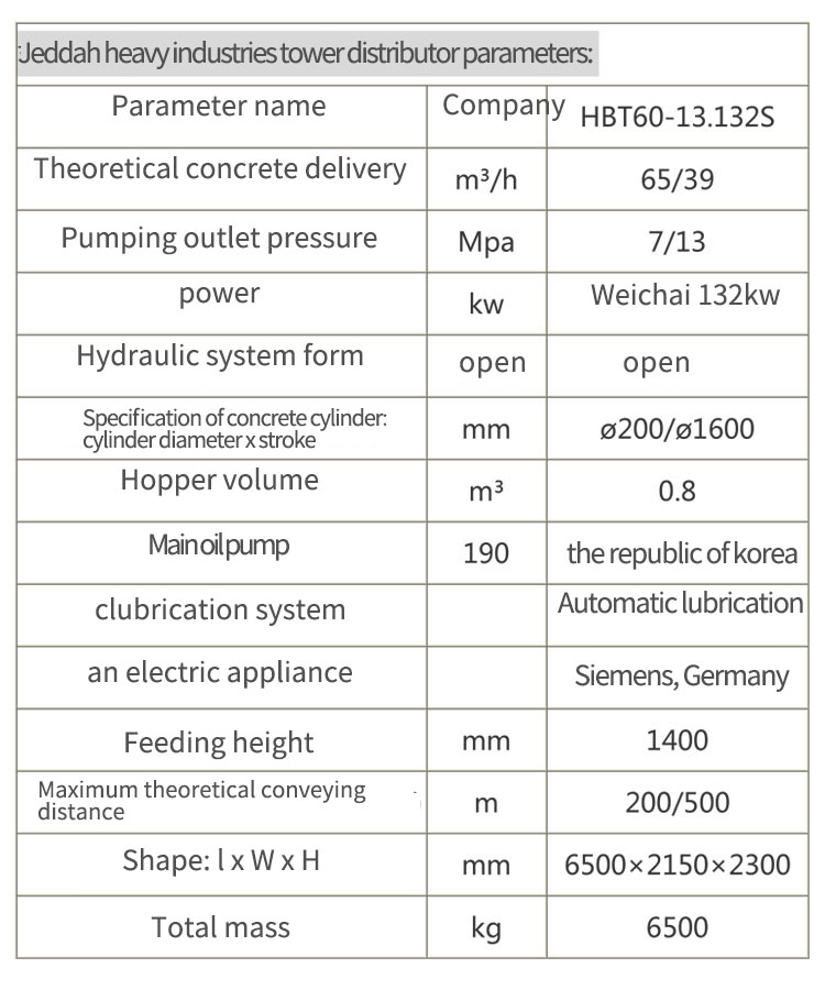 | 混聚土輸送管內(nèi)徑Inner diameter of concrete cylinder | mm | 125/150 | |||||||