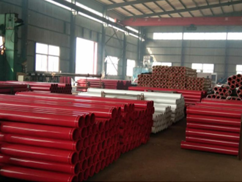 泵管使用合金鋼管焊接,經(jīng)過(guò)高溫淬火處理,使泵管內(nèi)壁形成2.0mm的層,層硬度達(dá)到HRC60以上,兩端焊接標(biāo)準(zhǔn)的12法蘭,鑲嵌硬度60以上的套,了混凝土的輸送量。